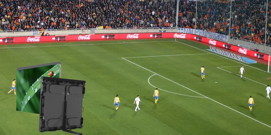 Layar tampilan E-Board atau LED Perimeter di stadion menampilkan iklan dengan memutar video, selain cara tradisional mencetak iklan. Iklan dari Tampilan Layar LED Stadion menghadirkan video definisi tinggi dengan kenikmatan visual yang sempurna daripada sekadar karton kaku dan iklan yang diam. Melalui layar tampilan LED stadion, yang menghemat biaya penggantian iklan dan biaya tambahan lainnya. Layar Tampilan LED Stadion dirancang dengan struktur unik yang dapat digunakan secara luas sebagai tampilan layar LED perimeter permainan bola, papan skor tampilan LED stadion, layar tampilan LED stadion olahraga multifungsi, dll.